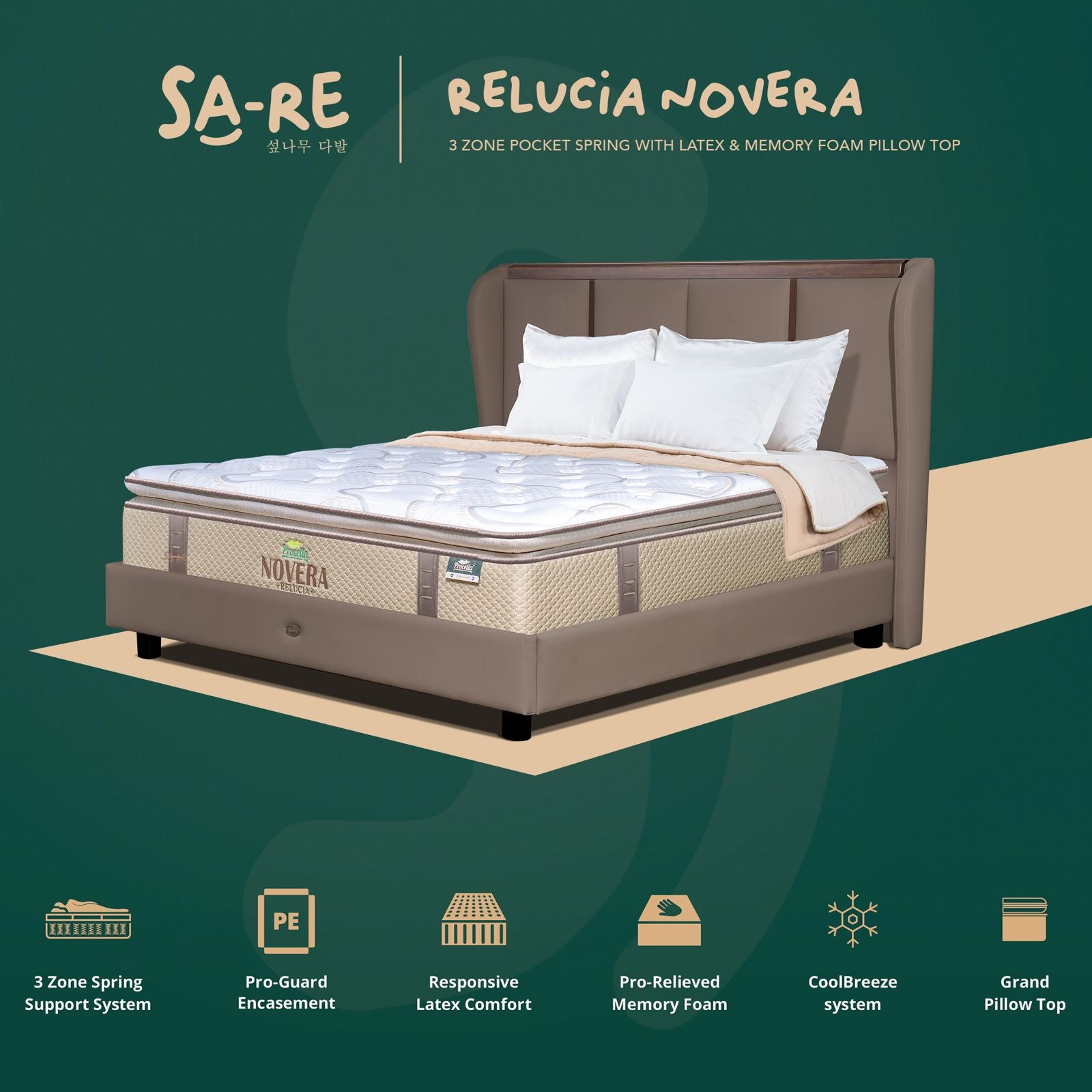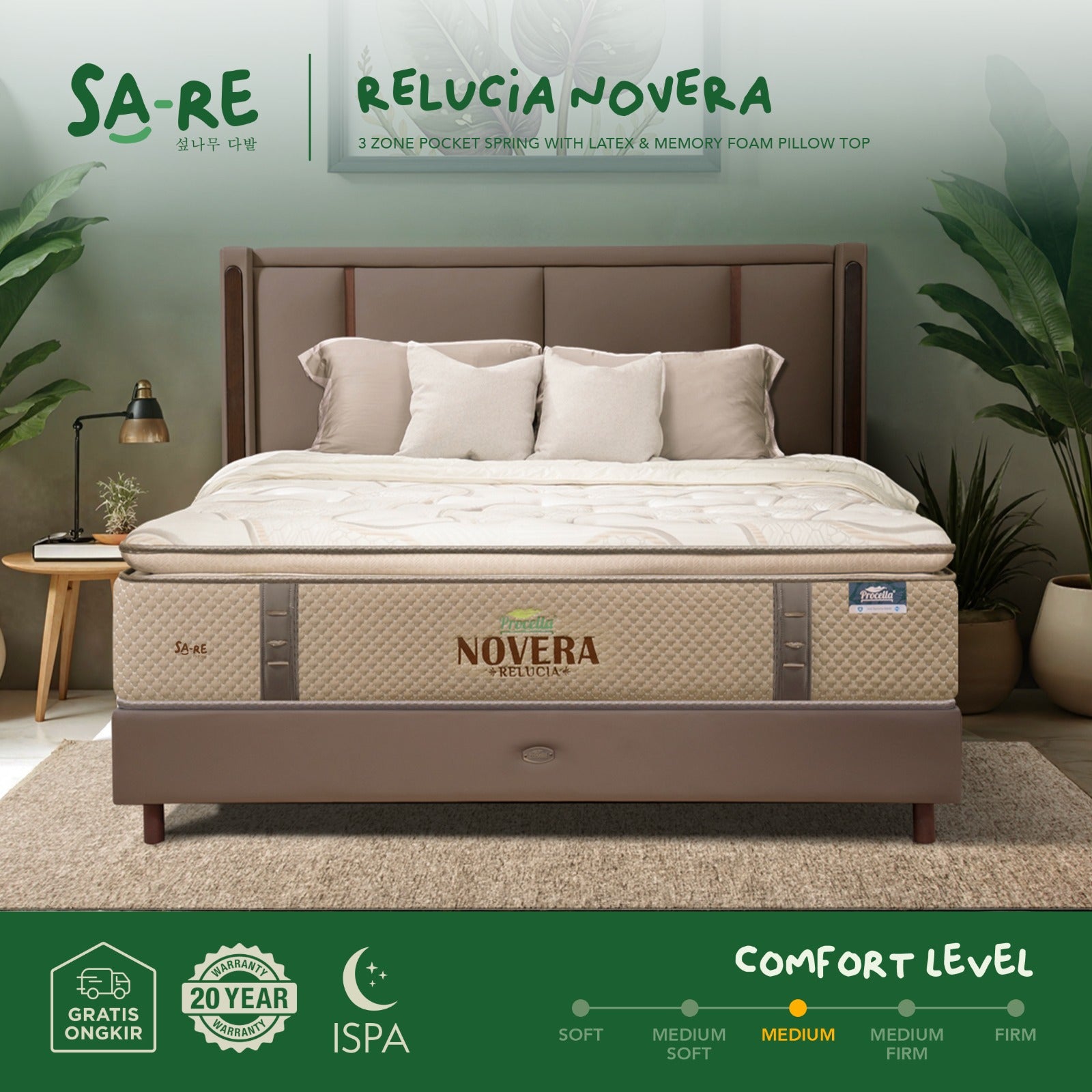 PROCELLA - SET NOVERA LUNOVA Kasur 3 Zone Pocket Spring Bed With Latex & Memory Foam Euro Pillow Top